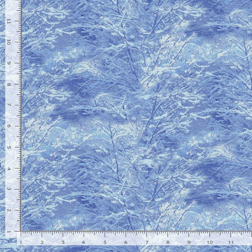 Large Blue Bare Trees Metallic Silver