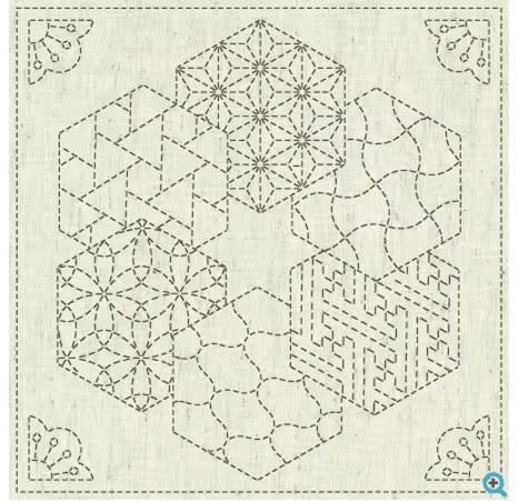 Sashiko Cloth - Kaza Guruma 2 By Fujita, Ky Sashiko pattern hand-printed with water-soluble ink on soft greige slub. Made of: 85% cotton and 15% linen blend cloth Size: 12in x 12in Use: Sashiko Cloth