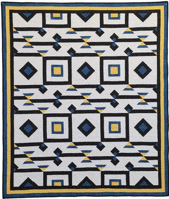 Enchanted Evening quilt pattern is inspired by the beauty of a New Mexico sunset. It is a cozy throw quilt you can cuddle under all year long. The clever rotation of the blocks is what creates the interesting image. Just add three fabrics and a background fabric for this fun quilt pattern. Finished Size: Lap/Throw/Wall Hanging: 48" x 56 1/2" Skill Level: Intermediate Technique: Paper Pieced