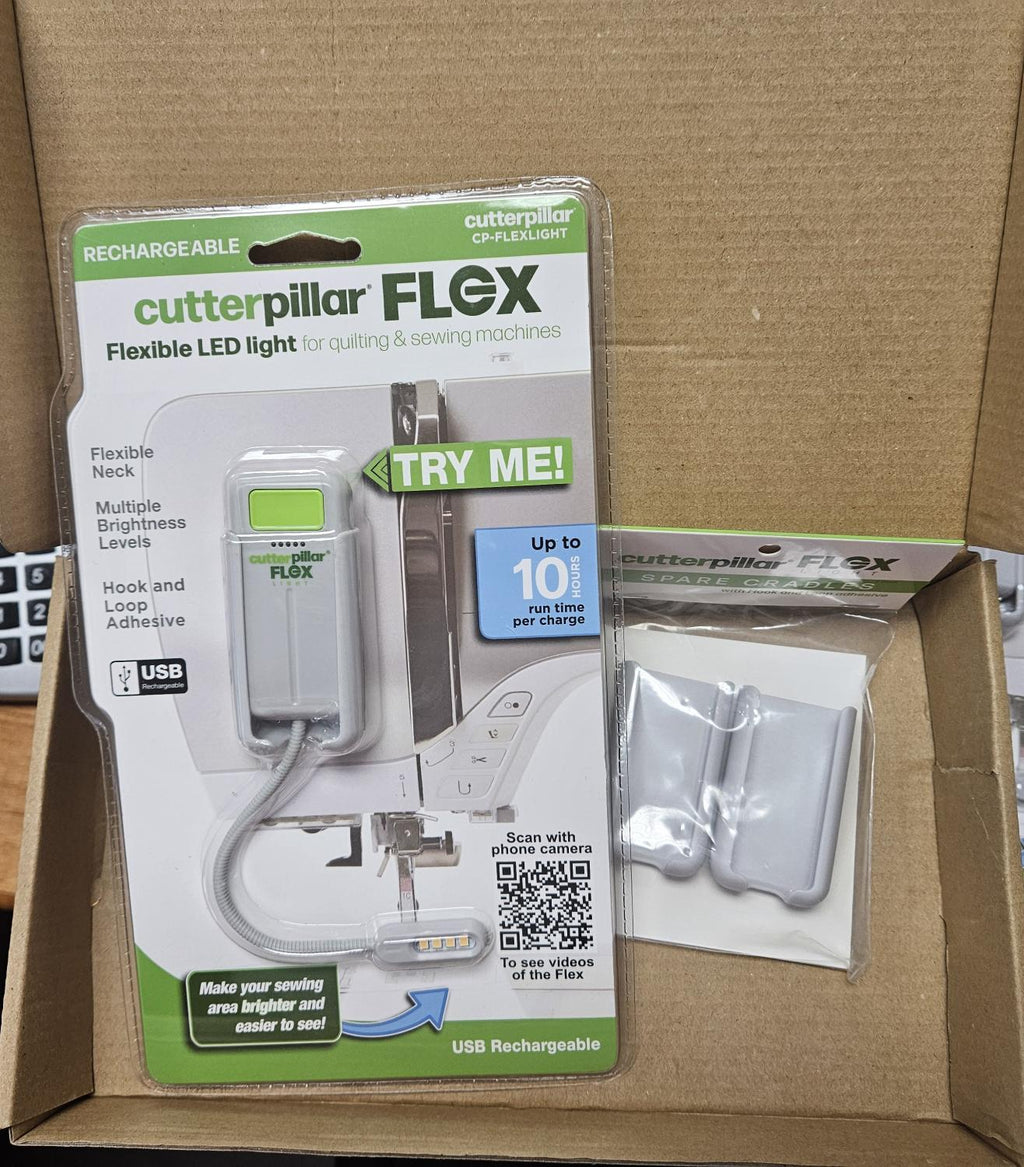 Two extra cradles for your other machines. Flexible LED light for quilting and sewing machines. USB rechargeable, flexible neck, and mulitple brightness levels. Up to 12 hours run time per charge.