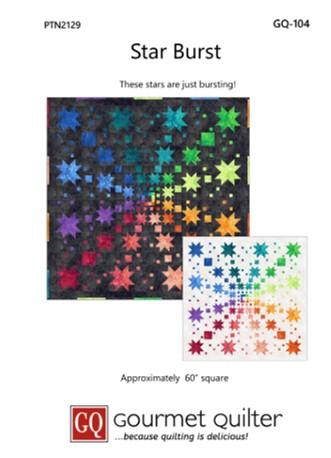 A delicious burst of colorful stars! Delightful on either a light or dark background, allowing the star colors to "pop"! The quilt pattern starts in the center and builds in rounds. Fabric line shown is Stonehenge Gradations Brights by Linda Ludovico for Northcott. Finished Size: Approximately 60" x 60" Skill Level: Advanced Beginner Technique: Pieced Designed by: GQ - Gourmet Quilter - SusanClaire Mayfield.