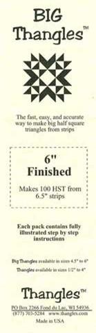 6" Big Thangles • Makes 100- - - 65" finished HSTs. • Use 6.5" strips. • Makes 6.5" unfinished HSTs that finish to 6" square. • Complete illustrated instructions included in the package.
